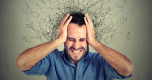 stressed man upset frustrated isolated on gray wall background. Negative human emotions