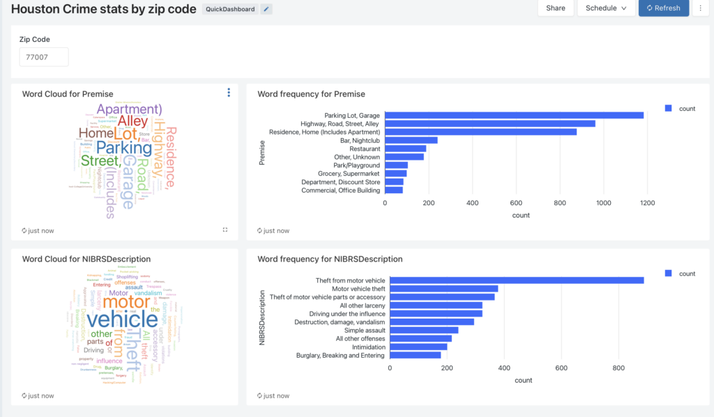 Welcome to our Sxsw 2023 Crime tracking Dashboard (Beta) launch! This dashboard currently is tracking Houston crime stats by zip code and type of crime. We plan to expand to Austin and San Antonio! In light of increasing concern about crime rates and personal safety in the Houston area, we developed a dashboard that will allow citizens to easily understand what types of crime are happening in their neighborhood. Crime rates and crime types vary from neighborhood and we wanted to provide useful information to citizens via a simple to use interactive dashboard!